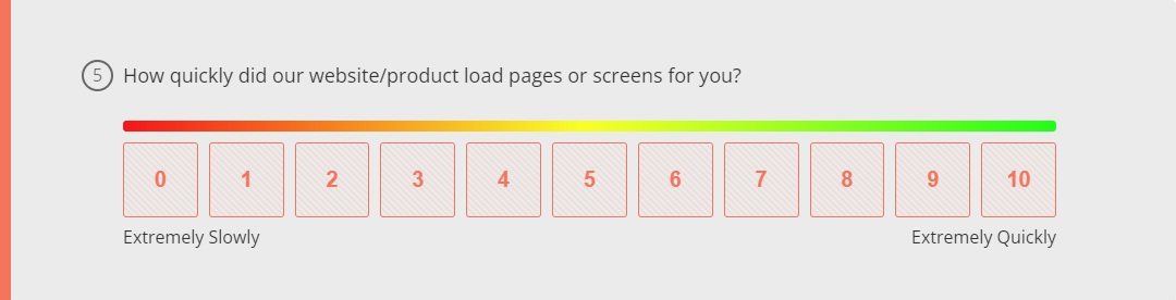 These questions aim to gather feedback on the performance and speed aspects of the user experience. They cover areas such as responsiveness, loading times, navigation, and overall satisfaction.