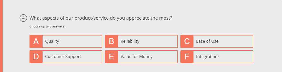 It’s important to use a mix of question types to reduce survey fatigue and increase response rates.