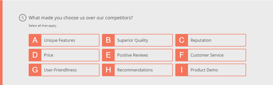 With each question, we’ll recommend the best question type to use. You should be able to find these with any survey software, but you can rest assured that Shout offers them all.