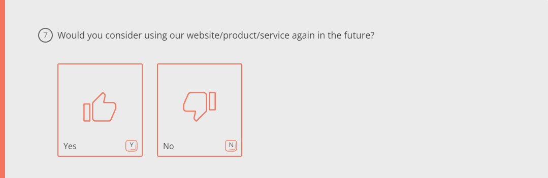 - Binary: Typically, these are Yes/No questions that allow you to filter survey results based on opposing opinions.